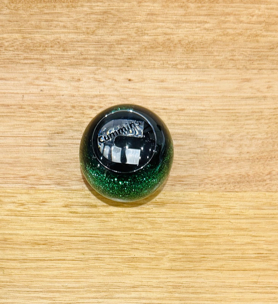 GS-CG1 : Green Glitter Round Knob with Round black/silver CUMMINS C detail