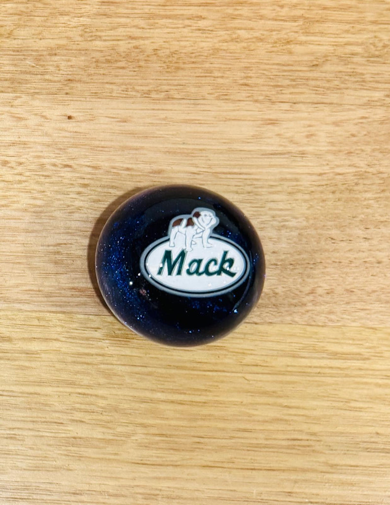 GS-MB2 : Blue Glitter Round Knob with Oval geen/black/white dog MACK detail