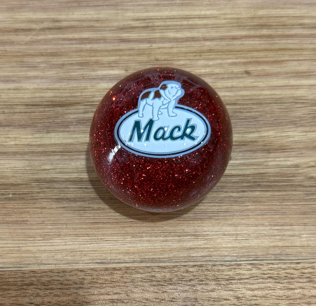 GS-MR3 : Red Glitter Round Knob with oval Green/Black/White dog Mack detail